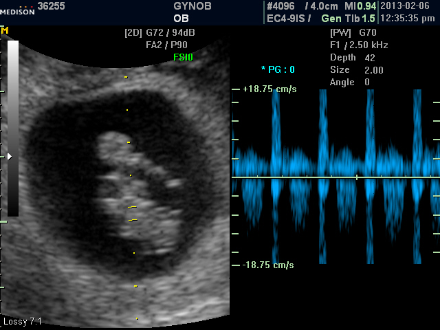 초음파 사진 보니 태아가 8주 정도 된 것 같은데 심장 박동이 확인된 후에는 유산되는 경우는 드물어 너무 걱정하실 것은 없지만 그래도 조심하시기 바랍니다.