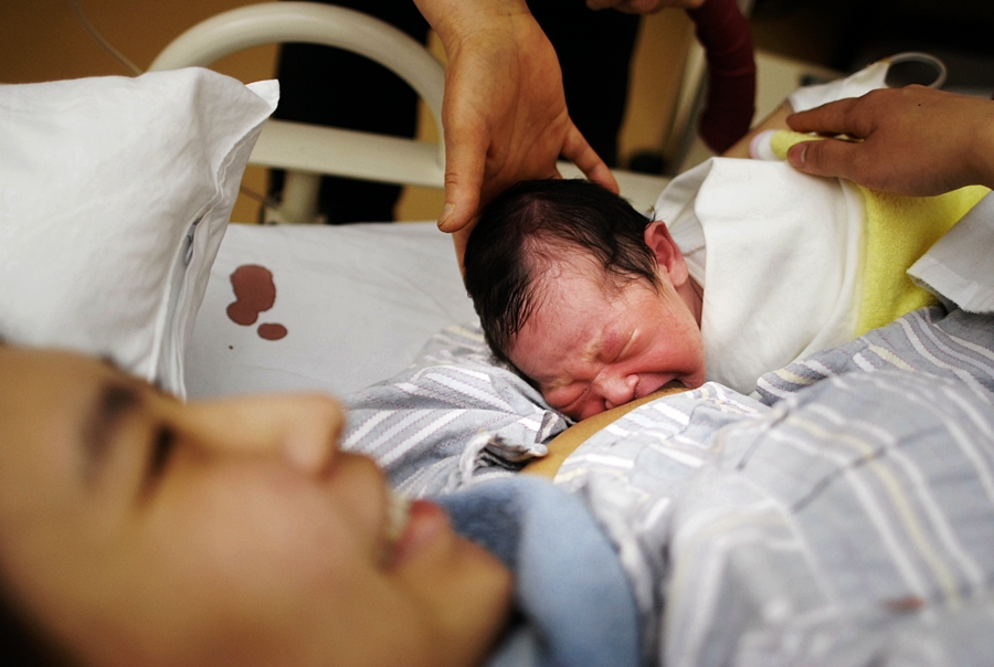 출산하고 나서의 산모의 얼굴이 무척 행복해 보입니다.