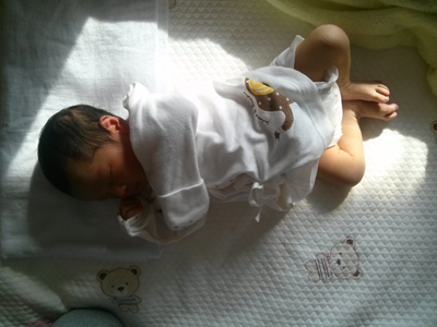 <생후 4일째- 뱃속에 있던 포즈 그대로 자네요~>