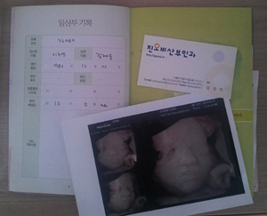출산예정일이 되어도 보늬는 나올 생각을 하지 않고 새벽녘이나 아침에 일어났을때 약간의 통증이 느껴졌다가 가시곤 했습니다. 그리고 다음날이 되었을때 갑자기 뭔가 조금씩 나오는 듯한 기분이 들었고 미량이라 그냥 분비물이겠거니하고 생각했었어요. 예정일이 지나도 진통이 없을 경우 24일에 정기검진을 받으러 오라고 하셔서 가서 검사를 해보았더니, 양수가 조금씩 새고 있다고 하셨습니다. 이럴경우 양수가 감염되어 아기가 오염된 양수를 마실 경우 폐혈증이나 폐렴이 생길 수 있으므로 최대 3일까지는 기다려본다고 하셨는데 지금 이미 이틀동안 진행이 되었기 때문에 주말까지 항생제를 처방하여 복용하고 진통이 오지 않을 경우 월요일에 유도분만을 해보자고 하셨습니다.