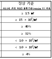 정액수: 1천5백만/ml 이상