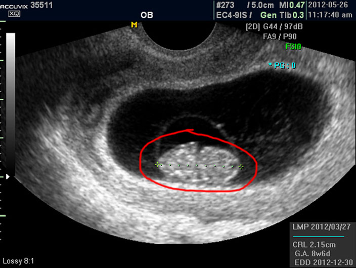 그러나 임신 8주 정도의 초기에는 아직 아기가 쌀알 보다 조금 큰 정도이기 때문에 인간의 형체가 또렷하지는 않습니다.