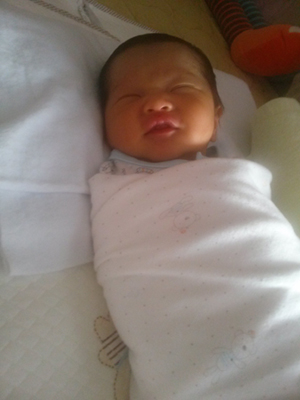 <생후 4일째- 뱃속에 있던 포즈 그대로 자네요~>