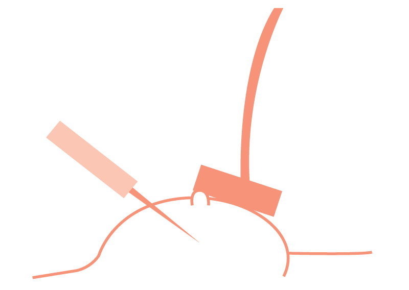 그림에서 보는 것처럼 초음파 검사를 통해 실시간으로 병변의 위치를 확인하면서 조직 검사 바늘을 병변 부위에 찔러서 소량의 조직을 채취하는 검사법입니다.