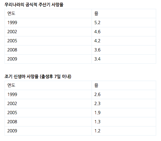 [추가 참고 자료--출처: 대한주산의학회지의 한국의 주산기 사망률의 감소 경향: OECD 국가와의 비교] 우리나라의 공식적 주산기 사망율