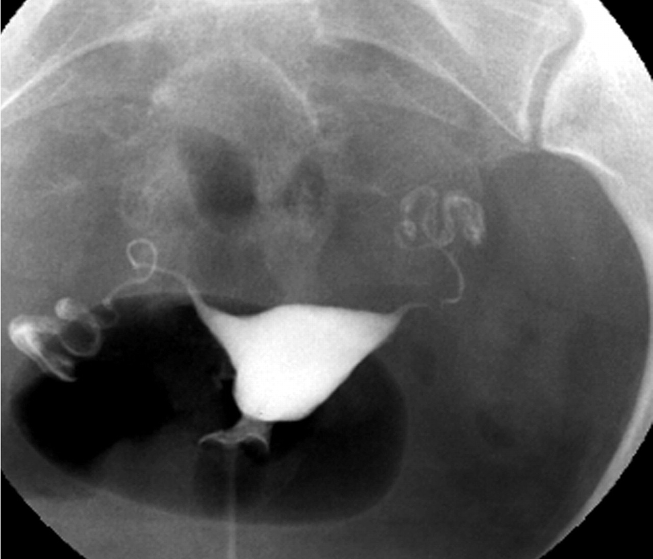 자궁경관에서 자궁강내에 조영제(造影劑)를 주입하고 자궁경관과 자궁강의 크기와 형상, 난관의 소통성, 골반복막의 상황, 유착의 유무, 난소종양의 유무 등을 X-선상(線像)으로 진단하는 방법이다.