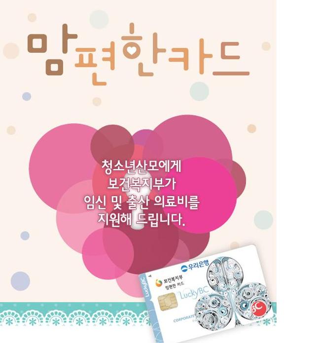 맘편한 카드 청소년 산모에게 보건복지부가 임신 출산 의료비를 지원해 드립니다.