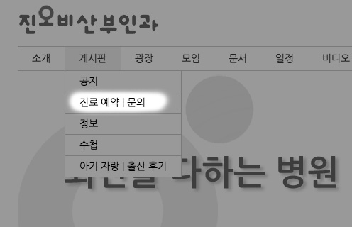 1. 문의 게시판에 글쓰기 우선 가장 일반적으로 쓰실 수 있는 것은 문의 게시판을 이용하는 것으로 상단의 메인 메뉴에서 게시판 메뉴의 하위 메뉴로 있는 [진료 예약 | 문의] 메뉴를 이용하시는 방법입니다. 이곳은 주로 진료 예약이나 기타 문의 내용을 적으시는 곳입니다. 자신이 올린 글에 답글이 달리면 알림이 가도록 기본 설정되어 있기 때문에 답글이 달리면 로그인 시 우측 하단에 알림창이 뜨게 되어 있습니다. 이 게시판에 쓰신 글은 공개글로 쓰셨을 경우 모든 방문자가 글의 내용을 볼 수 있지만 비밀글로 작성을 하시면 진오비 산부인과의 원장과 원무 담당 직원만 볼 수 있게 되어 있습니다. 올리신 글에 대하여는 특별한 사정이 없는 한 24시간 내에 답글을 달아드리고 있습니다.
