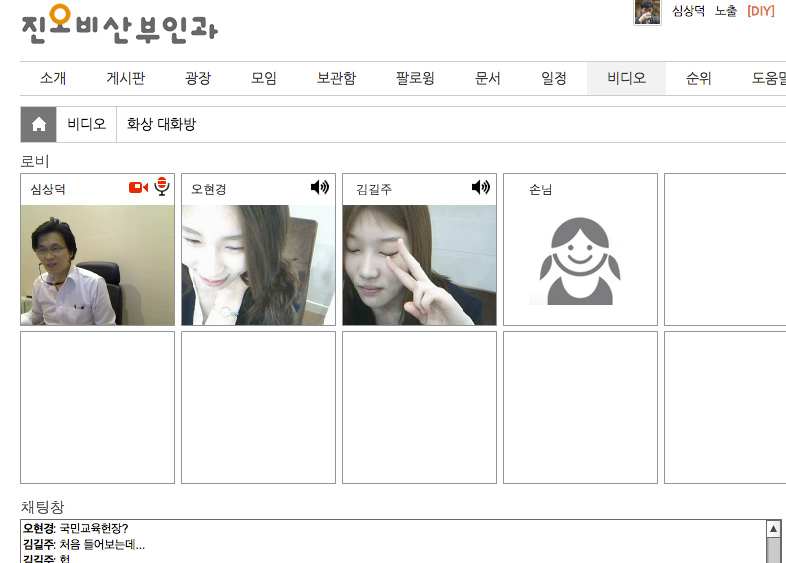 화상으로 상담하기를 원하시는 분들이나 홈페이지 회원간에 영상 대화를 하고자 하실 때 이용하시면 될 것입니다. 위의 이미지는 제가 분만실 직원들과 화상으로 대화를 나누고 있는 모습을 캡쳐 한 것입니다. |